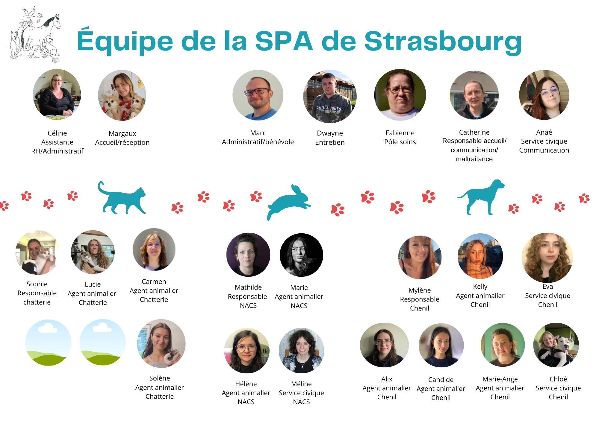 De l'accueil au chenil, en passant par la chatterie et dans les bureaux administratifs chacun met sa pierre à l'édifice pour œuvrer pour le bien être de nos protégés.